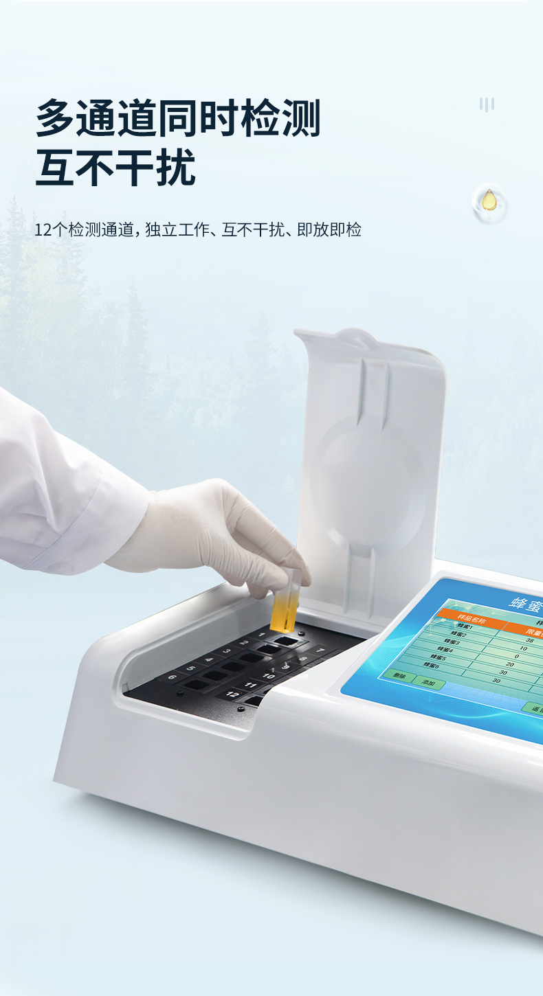 丝瓜视频污污污項目:蜂蜜蔗糖、蜂蜜還原糖(葡萄糖和果糖)、蜂蜜羥甲基糠醛、蜂蜜酸度、蜂蜜中農藥殘留、蜂蜜澱粉酶值、蜂蜜中脯氨酸、蜂蜜水分、蜂蜜糖分、蜂蜜中重金屬(鉛、鎘、汞)、蜂蜜中抗生素(氯黴素、四環素、磺胺類、呋喃類、喹諾酮類)、蜂蜜中灰分,應用範圍:應用於現場丝瓜视频污污污蜂蜜蔗糖、葡萄糖和果糖、羥甲基糠醛、酸度、農殘、澱粉酶、脯氨酸、水分、糖分、重金屬、抗生素、灰分含量的蜂蜜快速丝瓜视频污污污儀,可廣泛應用於各類蜂蜜品質的快速定量丝瓜视频污污污。